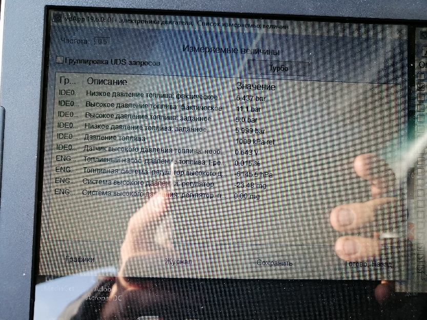 После простоя в час машина долго заводится. И не важно сколько раз завёл заглушил на холодную заводится долго. По компу давление топлива набирается долго начинается с 1000 паскалей и через 15 минут доходит до 15000 паскалей. Заводится долго до 5000 паскалей. У нас есть клапан сброса давления бензонасоса на обратке и где он находится? на первом фото на холодную на втором фото через 15 минут