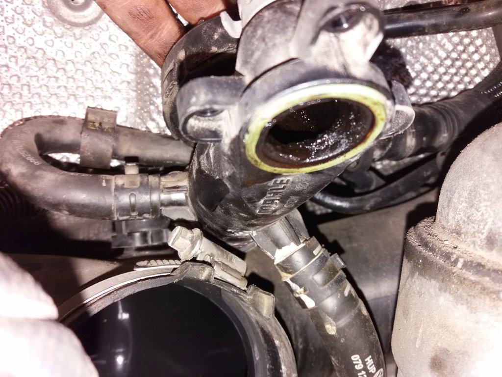 Уходил антифриз в морозы, в теплое время всё было хорошо. Внешний осмотр приговорил маслоотделитель - были заметны следы высохшего антифриза. При замене выяснилось, что сломался сосок.