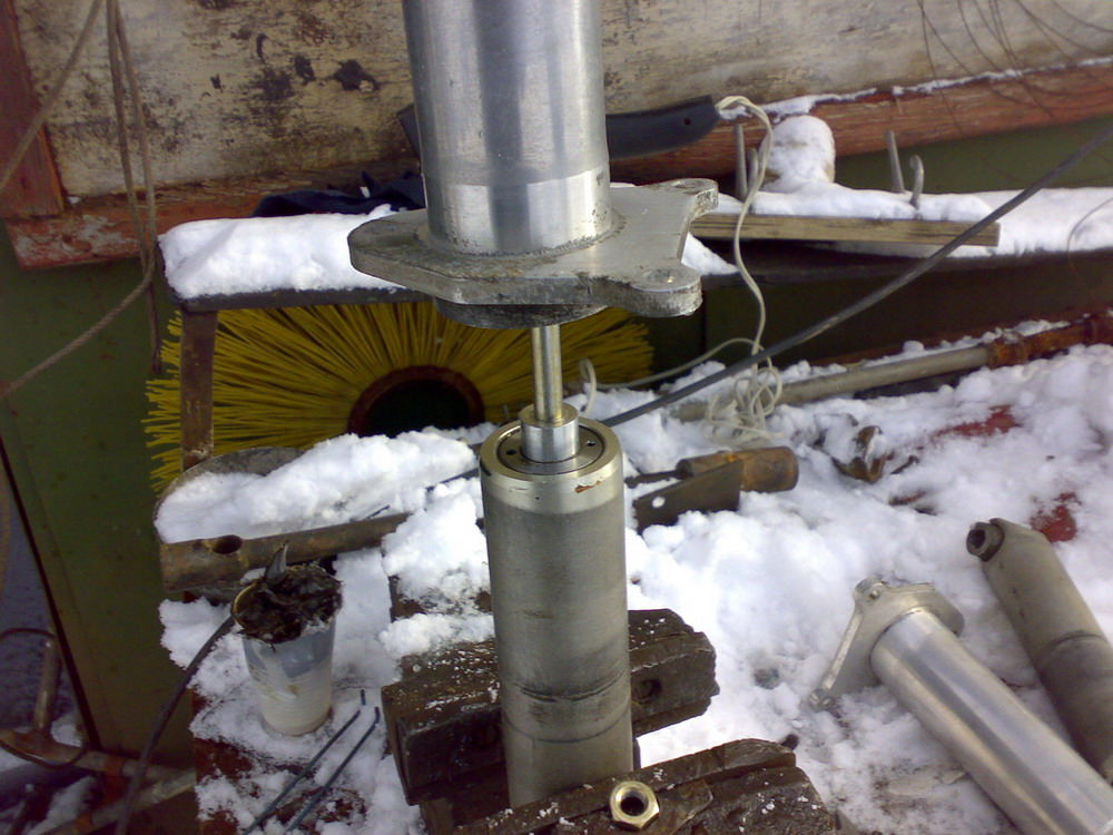 Несколько неудобно было его набивать т.к. плохо выходил воздух, а маслонагнетатель этот литол не брал. Но мы не привыкли отступать…, словом после этого всё собрал в обратной последовательности, отрегулировал длину демпфера по старым грязным меткам от сальника большего цилиндра.