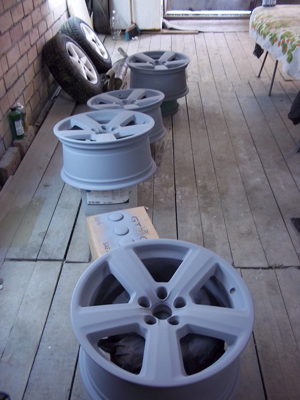 После как вышкурил шпатлю,диски отвёз в гараж где ихполностью загрунтовал