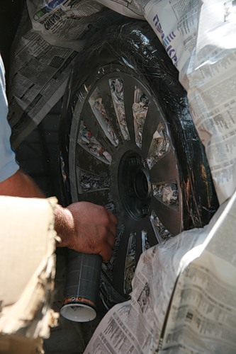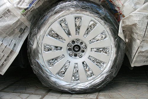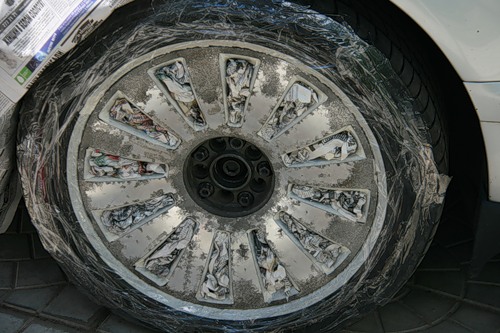 следующая операция - заклеиваем обычным скотчем резину, и газетами крыло