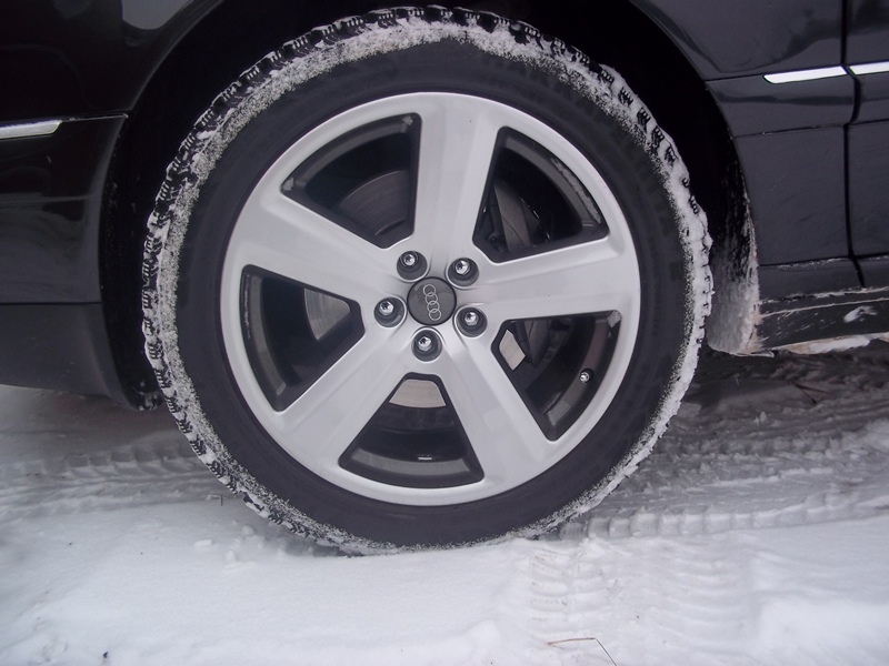 Прикупил на зиму комплект реплики на R18 J8.5 ET35.Диски нуждались в покраске,решил красить сам так как порошковой покраской в нашем районе незанимаются.Класил в два цвета,обычным пуливизатором.Внутри диска и по бокам спиц покрасил тёмно серым "мокрый асфальт" а сами лучи в серебристый "снежная королева".Так же были покрашены колпачки в "мокрый асфальт".