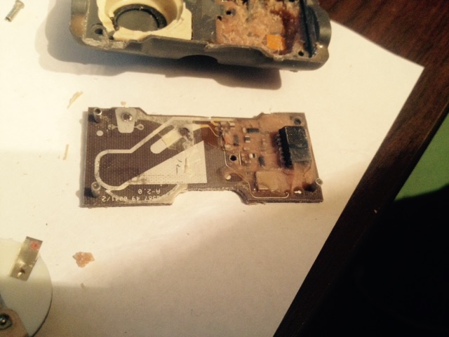 Нет плата не повредилась, там особо и нечему ломаться, на плате со стороны батарейки ничего нет, с другой стороны схемки.