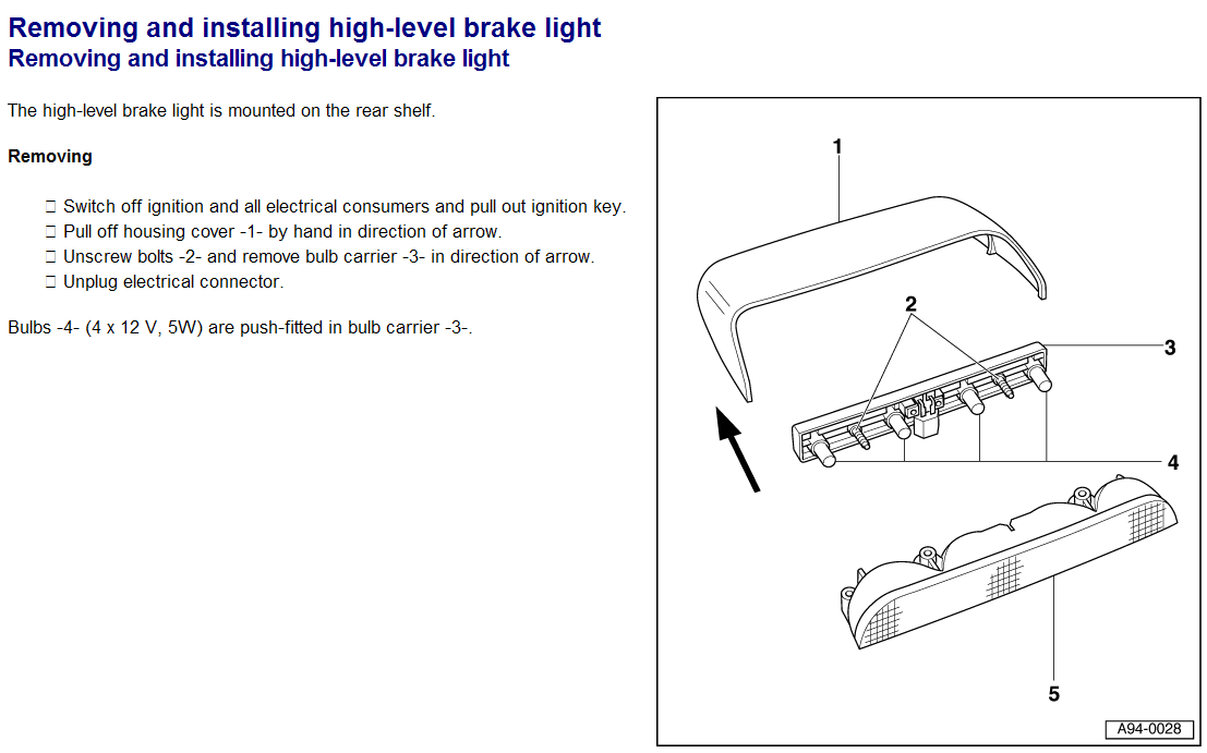 "Lens unit -5- is attached to rear shelf from underneath with bolts from luggage compartment." Т.е он снизу прикручен болтами, доступ к ним из багажника.