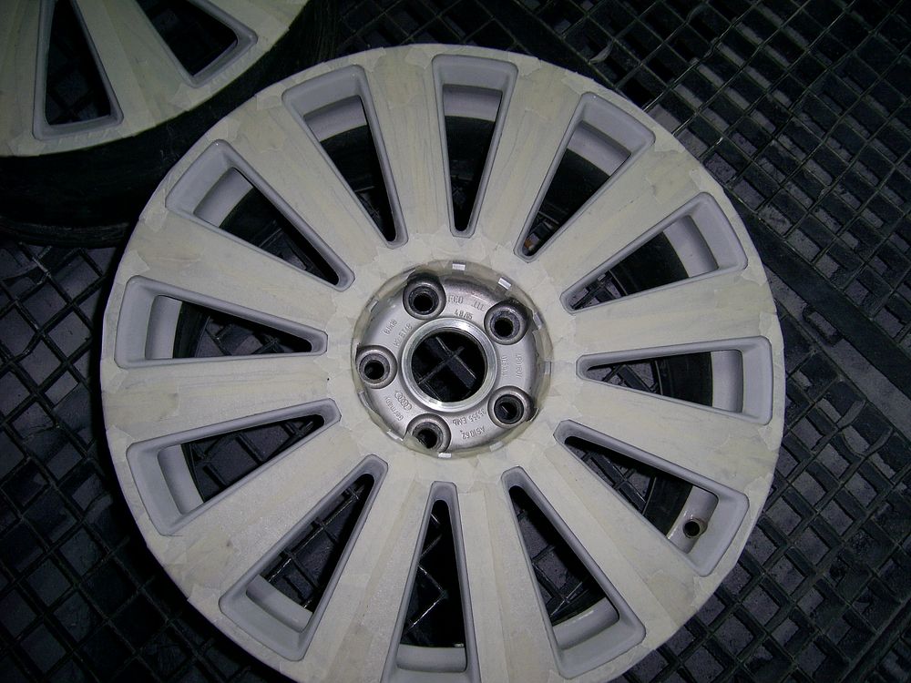 Всем добрый вечер :-)....... Вот мучался мучался и почти 100% из работы выполнилось, завтра будем красить мои катки, конечно подготовка ихняя, дело очень трудное но как говорится красота требует жертв..... Я подготовил в один день 2 диска у меня чуть пальцы не по отваливались )))... Болели ппц просто как........ Очень много времени уходить на шкурку раковин выемок всяких....... там очень сложно надо на совесть за шкурить и чтобы не поцарапать лакированную площадь диска........ Сегодня за часа 3 не упорного труда обклеил 4 диска..... Красить буду чёрным перламутром, зёрна которого на солнце будут переливаться....Колпачки таким же цветом покрашу но это будет уже в понедельник или вторник... Сниму обод во круг колпаков и значок ауди.... тоже за шкурю и покрашу.... Фото колпачков покрашеных выложу после операции