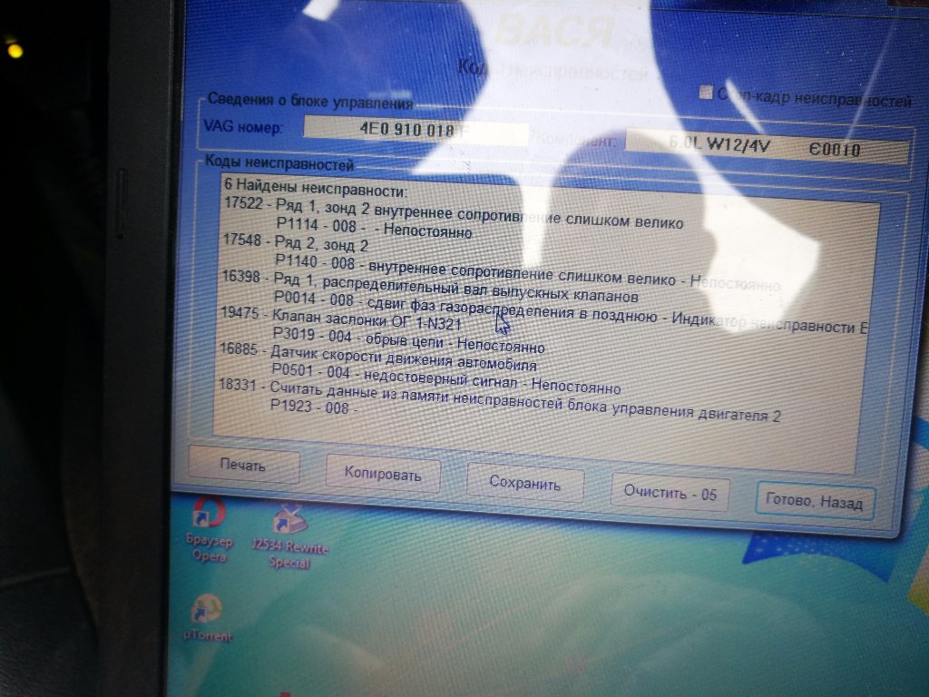 Ошибок ужасно много.. вот самые самые на фото. Что кто подскажет? По одису пишет что фазовращатель заклинил. И распредвал не притерся типа или смазка вала плохая выпуска и подсос воздуха второго впускного коллектора. Вася не очень точно описывает проблему по валам, одис точно. вообще реально после капиталки через 20т.км такие проблемы? При этом двигатель через раз работает идеально. На оборотах проблем нет вообще все четко, на хх только потряхивает иногда, пропусков нет, свечи поменял новые. По одису для проверки регулировки валов просит нажать газ и тормоз в пол на заведенном двигателе и держать так не меньше минуты.. жесть.. я попробовал) около минуты держал на отсечке(на свежем масле) машина просто скинула обороты и все, при этом пошёл перегрев, я стартанул на трассу(благо она прям возле бокса) остудил. Работет ровно, ошибка не ушла, но и не греется, держит 90. Как понимаю придется все снимать и смотреть мыть и чистить каналы и менять фазовращатели. Цепи меняны тоже 20т.км назад. Не могли же растянуться? и по второму фото, у меня 4 лямды отключены на евро2? или как? их же 8 должно быть.разгон тупой до 3500об, дальше пуляет. как понимаю из-за лямд? не зависимо от количества топлива в баке топлива. ночью лучше едет. расход примерно в городе если не топать сильно 18л и выше, на трассе 14-15л при 100-130, дальше больше. запуск отличный что на холодную, что на горячую(нет скачка оборотов на горячую до полутора т об при запуске) пока хочу разобраться с двигателем и акпп, масло поменял в акпп, пробыл гидроблок, но не заменил гидроаккумуляторы(три просевших) и один соленоид сетку разорвало(грязи было уйма) пока так собрал. как раз на местаз просевших г.аккумов есть небольшие пинки с 3-4 и 5-6. масло заливал фукс атф 4134 проехал уже 5500км без проблем! сейчас начнут говорить что масло только оригинал надо итд, расстрою таких) по допускам все отлично акпп 6hp26A61. долго я был в поисках масла подходящего в эту акпп, нашел)) и проверил уже. кстати акпп не прошивал и не адаптировал, инжиниринг не успел еще загрузить, да думаю и не буду, как ZFовцы сказали: при любом раскладе если с акпп порядок. она сама через 1000км адаптируется. так и произошло.а вот после основных устранения неисправностей, можно и за мелкие по электрике болячки браться