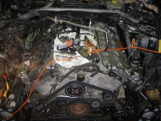 снимаем впускной колектор , и видем такую картину - для тех кто двс разбирать не будет можно не снимать !