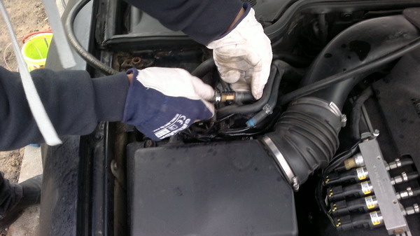 Возвратку от штатного насоса не нужно глушить, так как к ней подсоединяется шланг и опускается для обратки в ведерко, иначе 2 л. бензина с ведерка хватит только чтоб крутануть мотором.Kotofay писал(а):Обязательно заглушите патрубки подачи и обратки от штатного насоса.