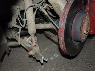 В пятницу поздно вечером возвращался с работы, ехал в левом ряду скорость была около 60 км\ч. Настроение было хорошее перед долгожданными выходными и тут машина коренится резко на правую сторону (можно сказать падает) со всякими страшными звуками меня выкидывает на правую полосу. Пролетев по снегу с заклининым колесом метров 100 кое-как остановился. Первая мысль была что взорвалось колесо но потом понял что это не так. Когда я вышел из машины и увидел что она упала на косесо у меня дар речи пропал!!!