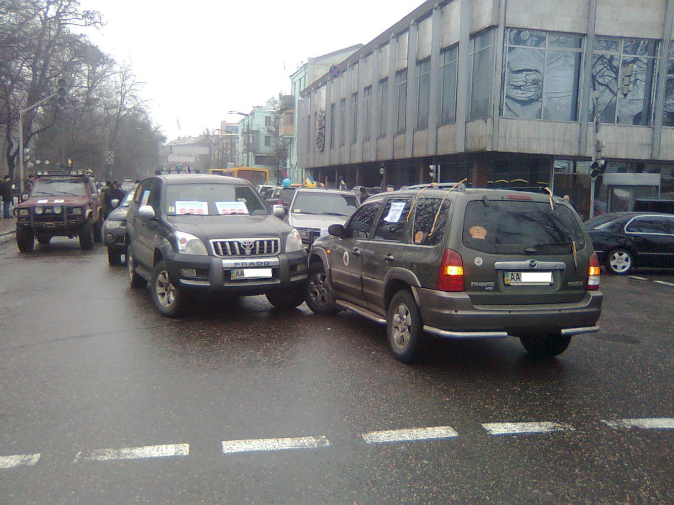 Автолюбители действительно собрались и заблокировали движение по одной из центральных улиц и подъезд к Верховному Совету Украины.