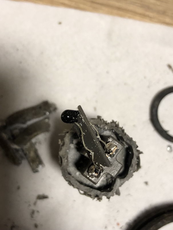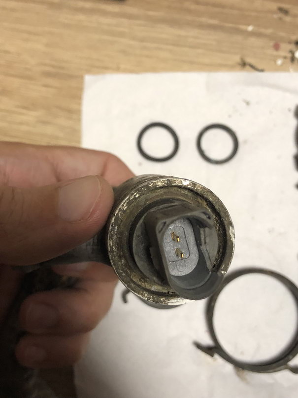 Среди остатков трубочек нашел одну с датчиком, решил попробовать извлечь его перед снятием его вслепую на моей W12 и вот как это было: