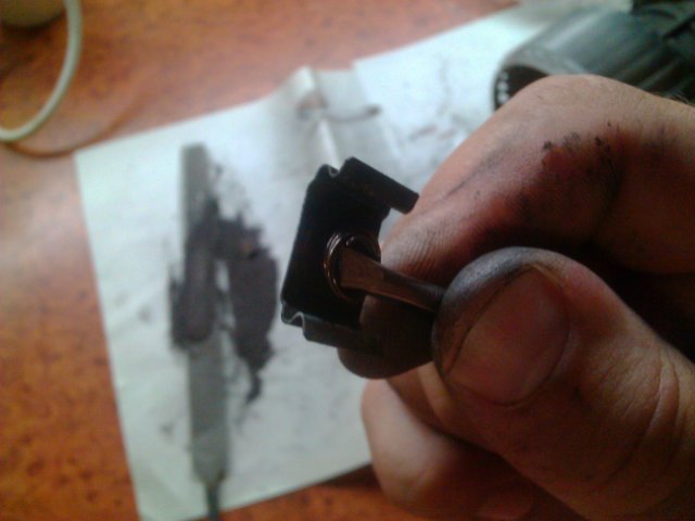 Далее вставляем пружину и фиксатор пружины. Я перепробовал много способов, помог пинцет, отобранный из косметички жены. Маленький и удобный )))))