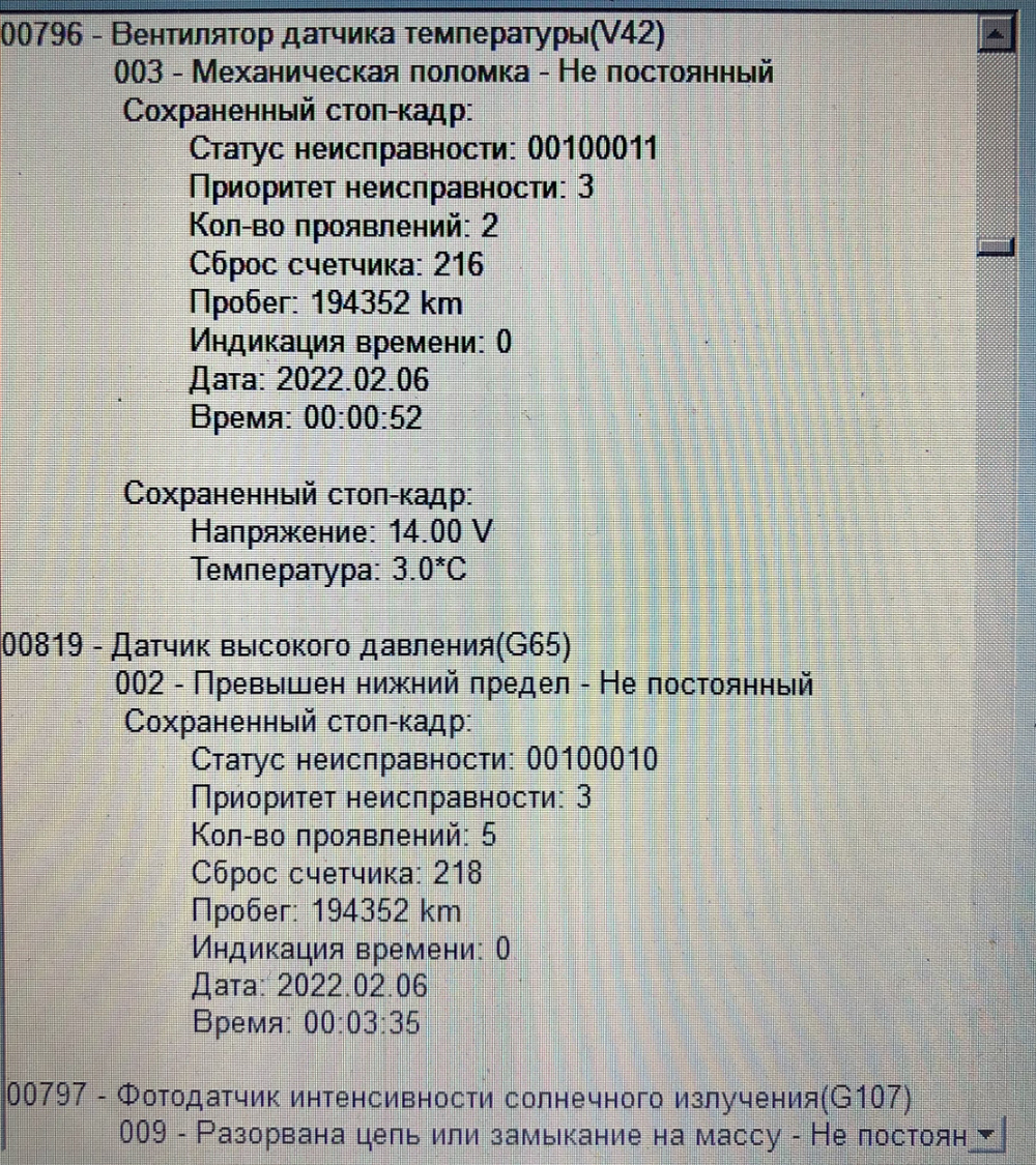 По первой ошибке дайте щелбан блоку климата в раене прорезей и должен заработать а по поводу датчика надо смотреть датчик или проводку.