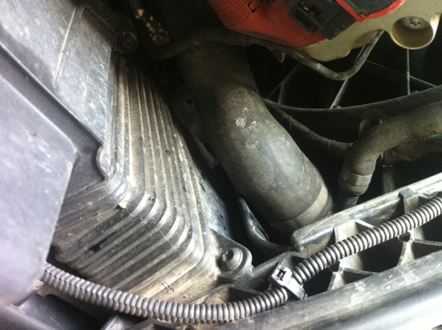 у меня такая же лажа с этим патрубком, там еще об телевизор перетирается и тонкий шланг, который идет к вебасте. Решил проблему путем (??), как мне кажется, проставки полипропиленовой теплоизоляции от труб домашнего отопления. Наверное это косяк ауди. Еще раз удостоверяюсь, что мерс С-класс стоит своих денег за которые его продают, а ауди, увы, нет.