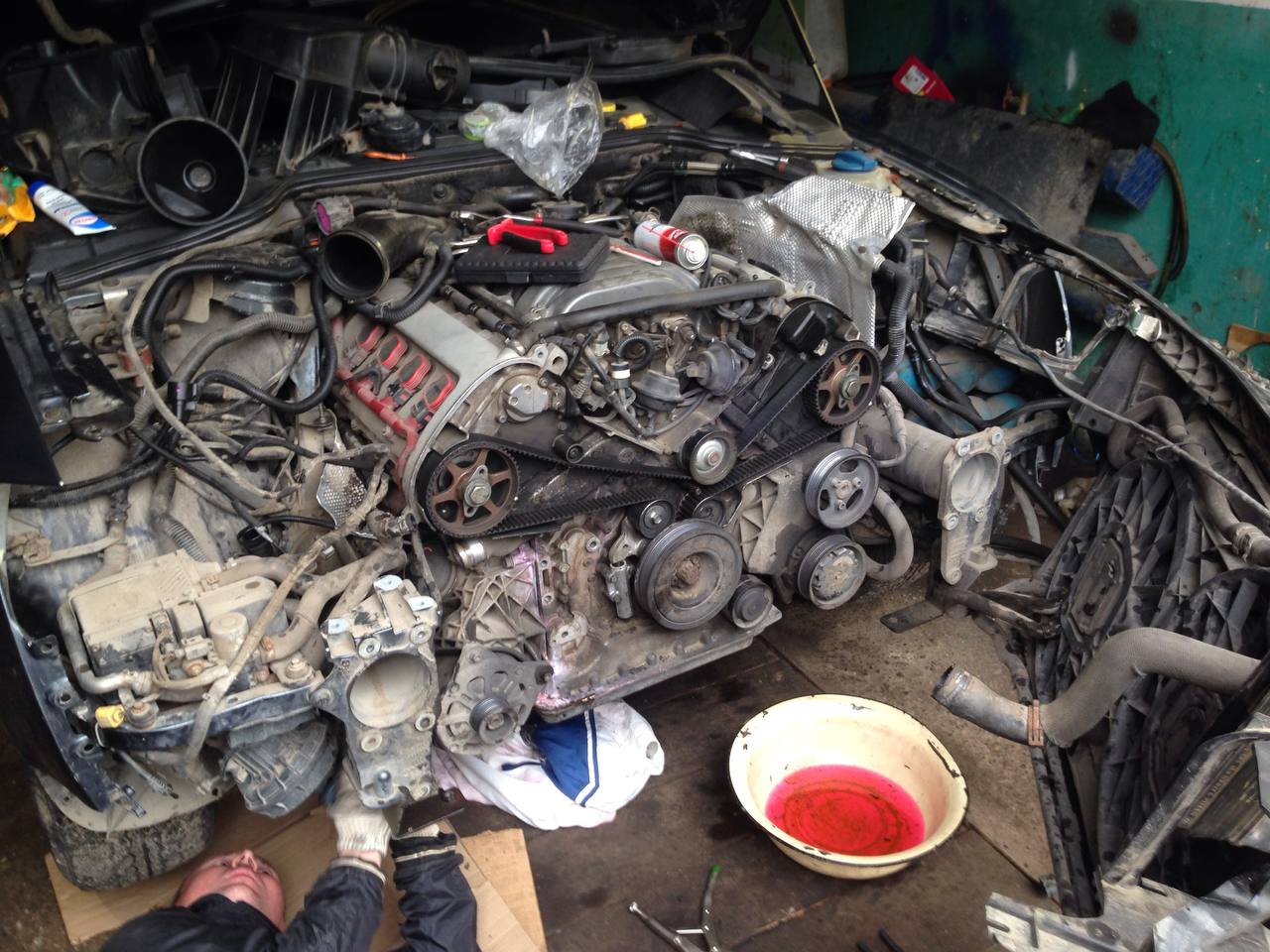 p.s. Для того чтобы добраться до места, было разобрано: бампер, фары, воздушный фильтр в сборе, кассета радиатора вместе с вентиляторами было отогнуто вбок чтобы не сливать гур и фрион (перед этим с кассеты вентиляторов была демонтирована проводка), снят телевизор, генератор и его причиндалы, вебасто, моторчик продува катализаторов, кронштейн правого крыла, отогнут подкрылок, снят лонжерон, отогнут теплоэкран и только потом, под конец был снят корпус масленного фильтра в сборе с теплообменником. (Может что-то забыл, если вспомню, допишу позже). Походу разбора морды несколько болтов оторвались/сломались в самых разных местах. Пришлось высверливать. Например у кронштейна крыла пришлось делать новую закладную, так как гильза провернулась, , 1 болт на усилителе бампера, еще один на вебасто, держит металлический кроштейн трубки, и так далее... Чтобы в будущем ничего не сорвать, все болты теперь закручиваю на фиол.