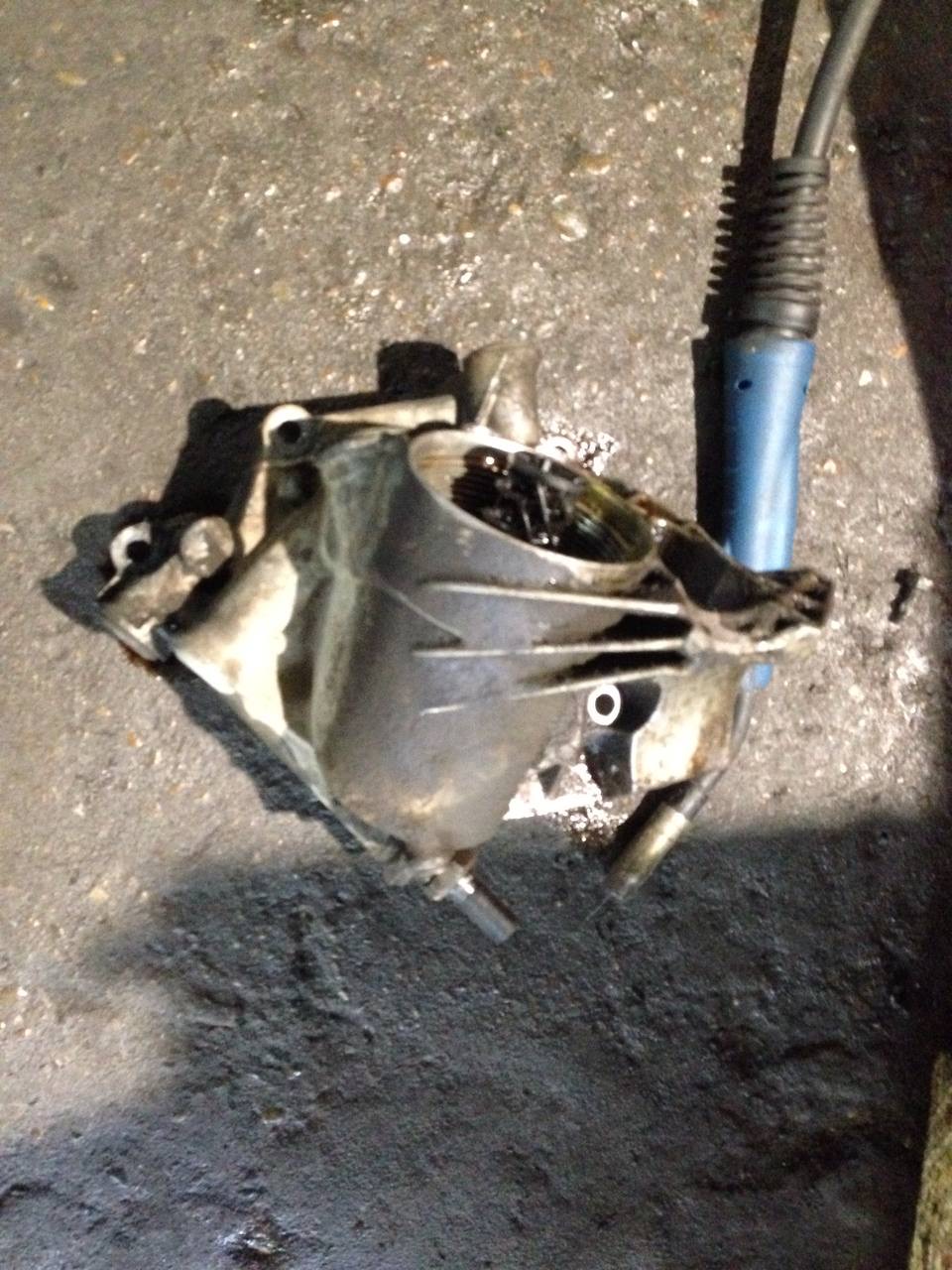 Отбуксировал машину до ближайшего сервиса, снял защиту, нажал шваброй на клемму и одновременно завел. Все завелось без проблем. Затем не глуша машину поехал в дружественный сервис и там уже начали все раскладывать по полочкам. Не без проблем конечно. Сначала начали откручивать передний подрамник на котором установлены подушки двигателя и обнаружили, что с одной стороны стоит огромная гайка под шпильку, а с другой стороны огромный болт, который кстати ели ели открутился. Откручивали его примерно минут 45. Чего только с ним не делали. Далее, когда сняли подрамник, обнаружили что одна левая подушка двигателя разорвана по полам, и из неё вытекало масло. Заменили подушку, благо лежала прозапас.
