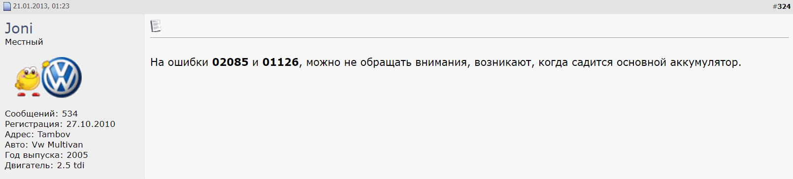 По поводу этой ошибки, наткнулся вот на такой комментарий в интернете. Но у меня эта ошибка не пропадает от слова совсем. <br /><br />Судя по этому и другим комментариям к этой ошибке, она возникает при любом удобном случае, любой проблеме с Webasto. Аналог ситуации с 07 блоком MMI, чуть что не так закодировано, сразу вылезает ошибка с защитой компонентов.