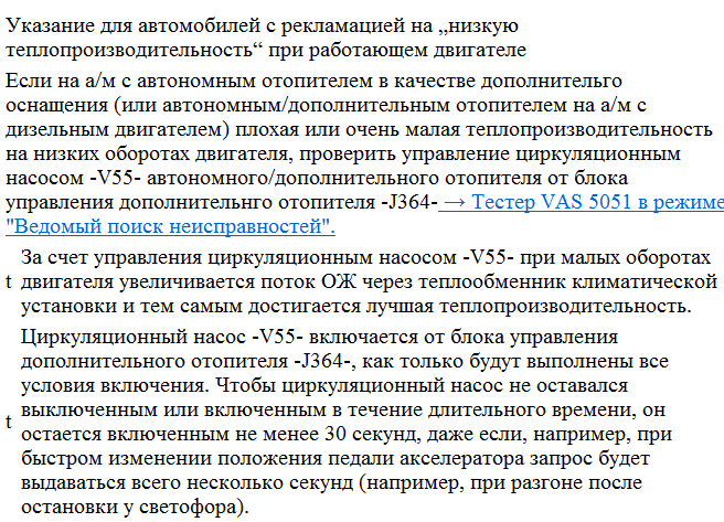 ИТОГ: не хватает давления антифриза от шланга подачи который начинается с двигателя, далее проходит через N279 и V55 от Webasto и далее двигается к блоку климата.