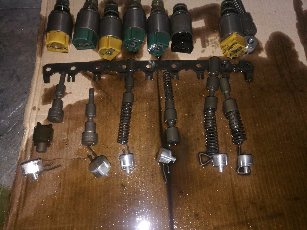 Доброе всем утро. Вопрос в следующем: разобрал гидроблок, очень много грязи всякой. Это не страшно, самое главное не могу найти в разобраном виде такой, так как два клапана идут без пружин, так и должно быть, или подбирать надо? На фото два с левой стороны. Есть у кого знания или фото видео как должно быть? В эту коробку официалы лазили в 2016году, не известно какими руками.