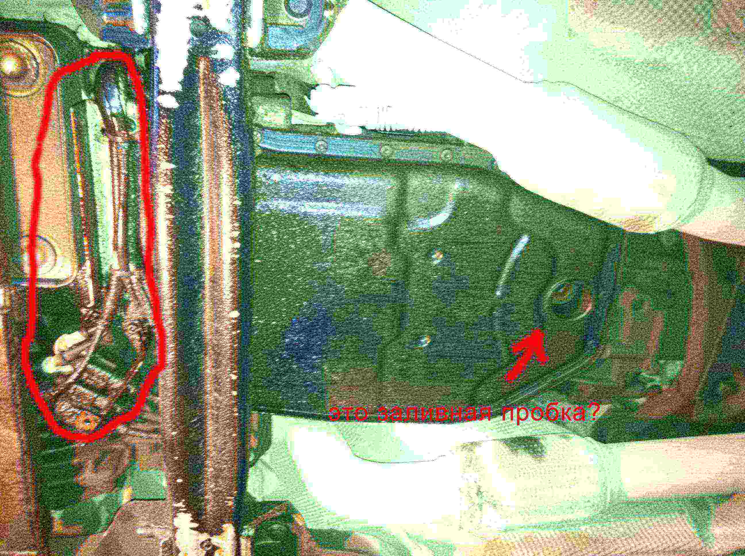 Пробку ты правильно указал. А точно АТФ? На вкус как? У меня антифриз красный бежал, и как раз с этого места. Ну верней стекал сверху, а внизу в этом же месте сыро было.