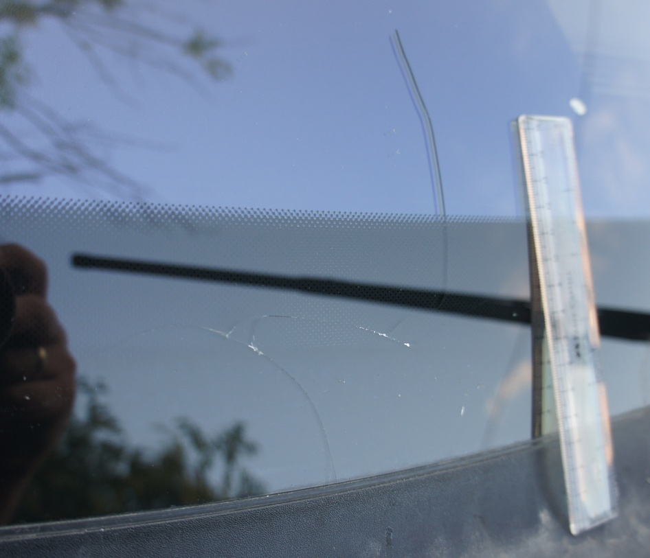прямо под дворник залетел... а вечером заметил, что трещина вверх пошла...