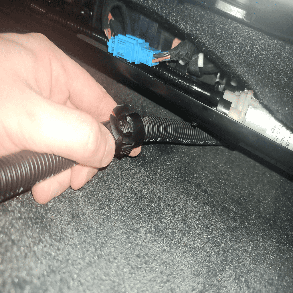 Кто может сделать фото того как у вас крепится проводка которая идёт в гофре под сиденьем водителя и пассажира? Она идёт из пола к блоку и моторчикам, крепится должна (гофра) зажимами к напрямляющим.