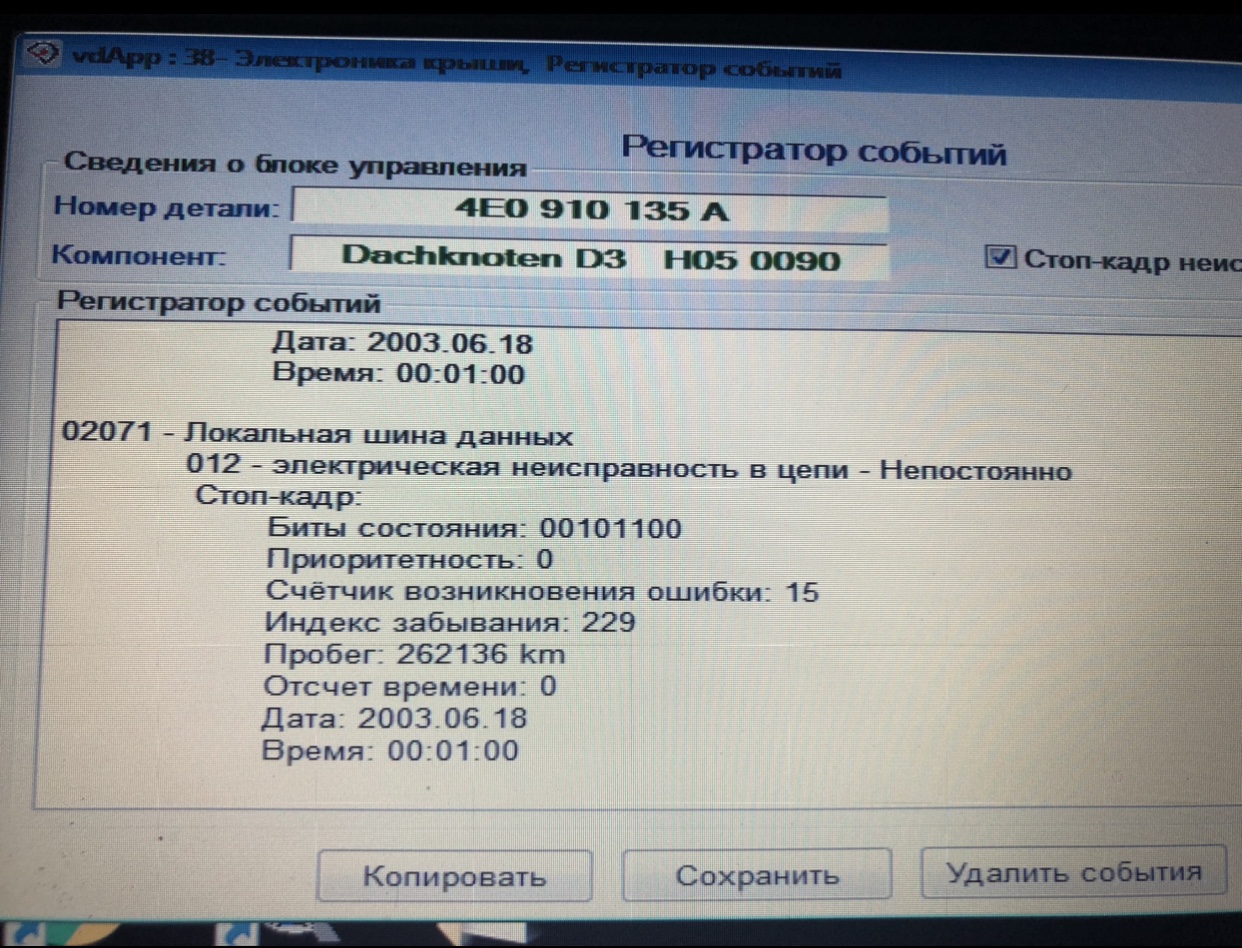 p.s. 15 клемма может коротить шину данных и в другом месте. Но у вас в ошибке написано «локальная шина данных». Локальная там только между блоком потолка и эбу моторчик люка.