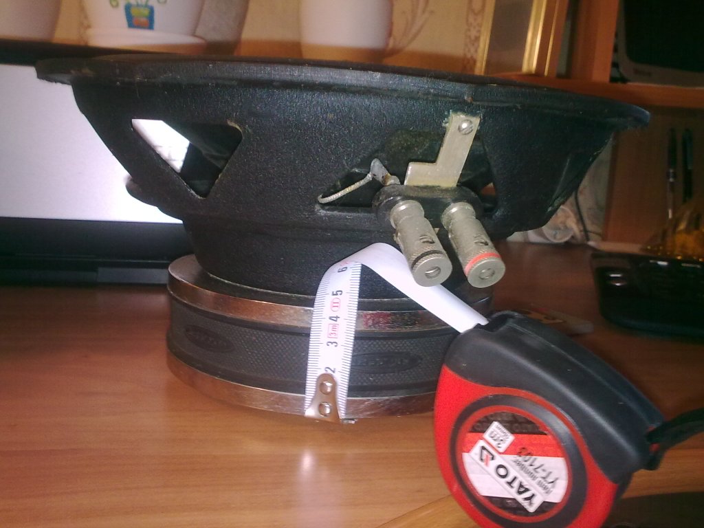 ! Есть вот такой динамик(смотри фото) как мне его подключить к штатной акустики с наименьшими затратами? есть мысль поставить вместо чехла для лыж. Можноли просто вырезать кусок фанеры и вставить этот динамик туда, может ли сам багажник служить "корпусом" для саба? Какие характеристики динамика не знаю в нете не нашел