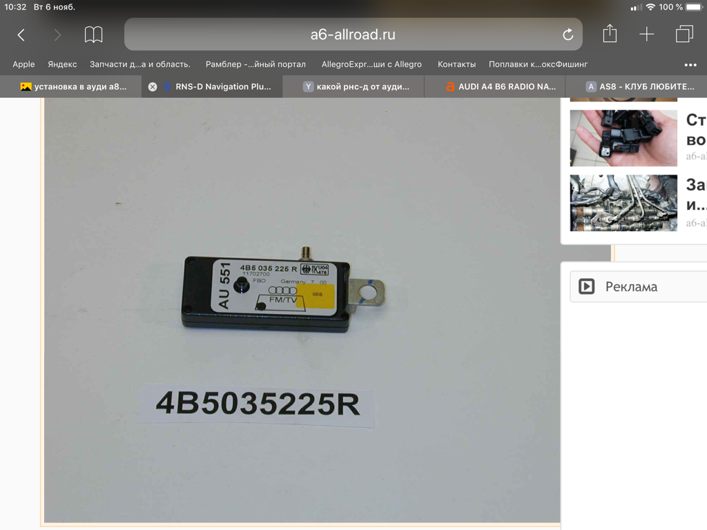 4b5035225R, это усилитель антенный от а6, у нас думаю такойже но с другой буквой, кто знает где стоит?