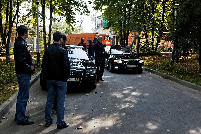 И еще немного постоять... Водители соседних машин многократно пытались наехать друг на друга, засмотревшись на длиннейший кортеж. Мимо такого регулировщика не проедешь. - Кроме А8 других машин нет, все остальные вымерли? Скоро с час уже стою