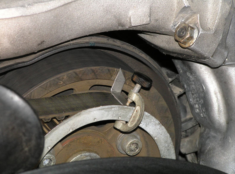 Шестерню еле-еле сдвигая на правом распредвалу, ослабив 3 болтика под шестигранник.