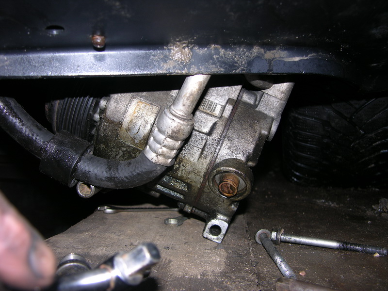 Вкручиваем болт в коленвал, для этого придется снять привод кондея.