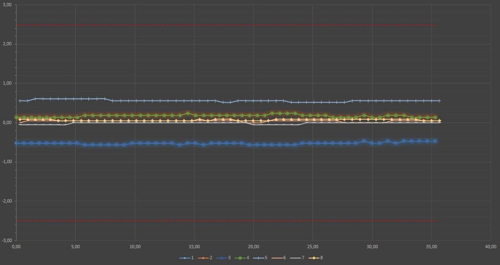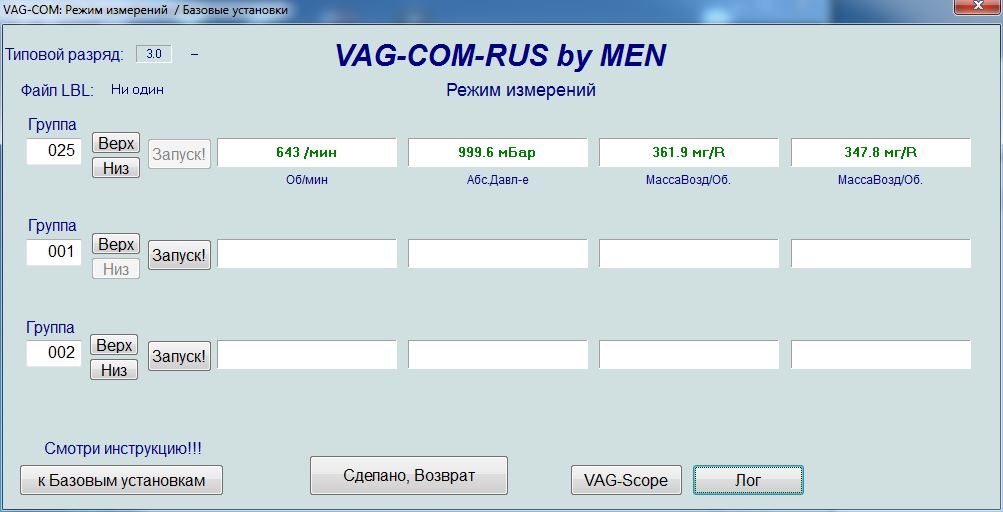 так было исходно (33 группа, базовые): После замены местами расходомеров получил такую картину 25 группа на ХХ: Тест турбин на 100% нагрузке (11 группа): 21 группа на 3000 об/мин : 10 группа на 3000 об/мин : 22 группа на 100% нагрузке : Коррекция форсунок (6 форсунок в пределах 0,3, 2 в пределах 0,5-0,6), (13-14 группа): 8 группа на 100% нагрузке : 01, 02 группа на ХХ: