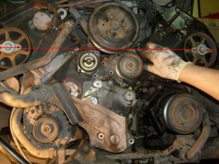 Снимаю ремень ГРМ (предварительно запомнив, где какой натяг ремня был).