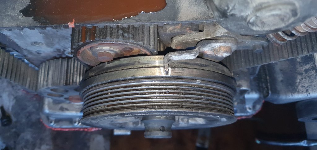 есть у кого идеи почему так?? примерно на взгляд против часовой на один болт шкив мимо стоит ...На распредвалах вроде все совпадает...и шкив алюминевый...не видел еще таких
