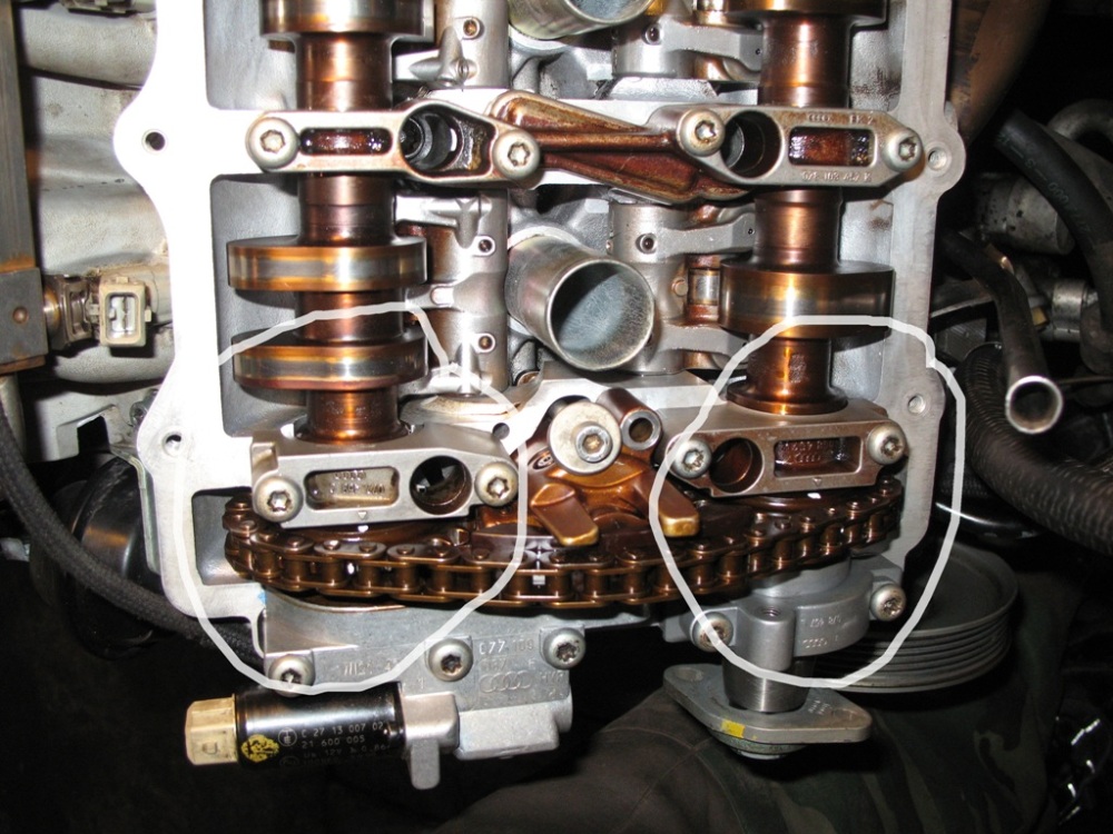 Купили авто A8 2000г двигатель AQG 3.7, передний привод. Двигатель требовал ремонта , были погнуты клапана на левой головке . Нашли головку , поршень с шатуном и поставили, сам выставлял фазы согласно Elsa , 15 роликов цепи между звездочками распредвалов , метка на шкиве коленвала совмещена с меткой на кожухе т.э. поршень пятого цилиндра в ВМТ, метки на шестернях распредвалов большими отверстиями смотрят друг на друга, в таком положении одел зубчатый ремень , прокрутил несколько раз коленвал вручную , все нормально метки не сместились ,собрал все остальное ,залили масло и охлаждающую жидкость , правда не меняли ремни и ролики с натяжителем , все оставили старое.