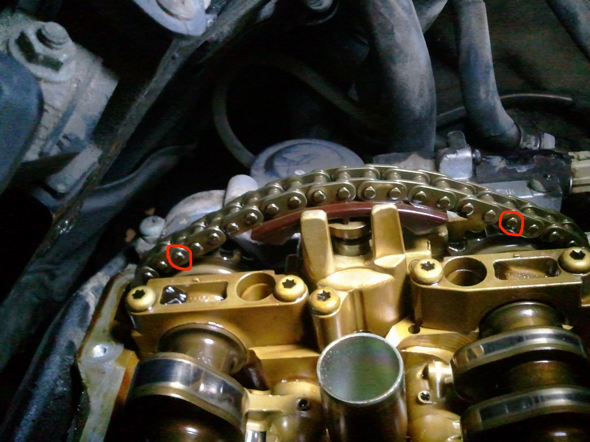 Общие замечания - по правой голове все как в книжке - метки на распредвалах попадают на зубы звездочек, поэтому берем левее и получается 16 роликов - все нормально.