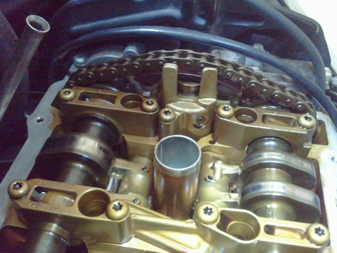Регулятор на правой голове при нормальных условиях должен быть в верхнем положении, а по левой - в нижнем. Я думаю это достаточно важно, так как регулятор в другом положении изменит положение впускного вала и можно ошибиться с правильной установкой. Если регуляторы рабочие - они будут заклинены (хотя регулятор на правой голове можно немного продавить, так как у него клинится нижняя часть, а верхний башмак подпружинен).