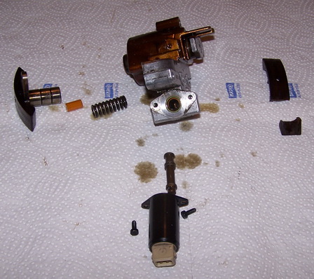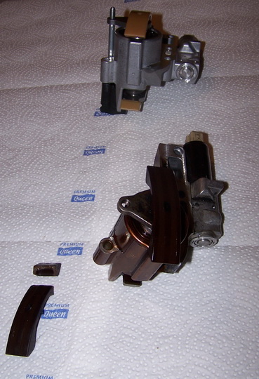 Так вот представляю вашему вниманию отчет по решению второй проблемы, т.е.по замене натяжителя цепи/регулятора фаз газораспределения. Оказалось, что этот натяжитель цепи/ регулятор фаз газораспределения заклинил (верхний поршень) и обломало кусок башмака, который, после снятия клапанной крышки, лежал себе на натяжителе. Слава богу, что этот кусочек башмака не попал где-то в другое место и ничего больше не повредил. Вобщем не известно, что вначале с ним произошло – заклинил и затем обломало башмак или наоборот. Одно только известно, что стук на холодную несколько секунд издавал скорее всего обломанный башмак, а ошибку выдавало из-за заклинившего натяжителя цепи/регулятора фаз газораспределения. Итак для замены натяжителя цепи/регулятора фаз газораспределения на левой головке, т.е. 5-8 цилиндр необходимо: