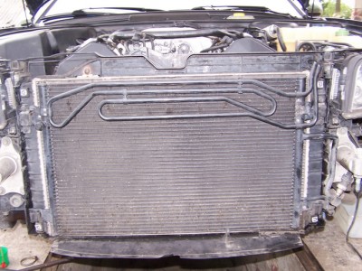 9. Открутить болты крепления радиатора кондиционера и вместе со шлангами отвести его в сторону.