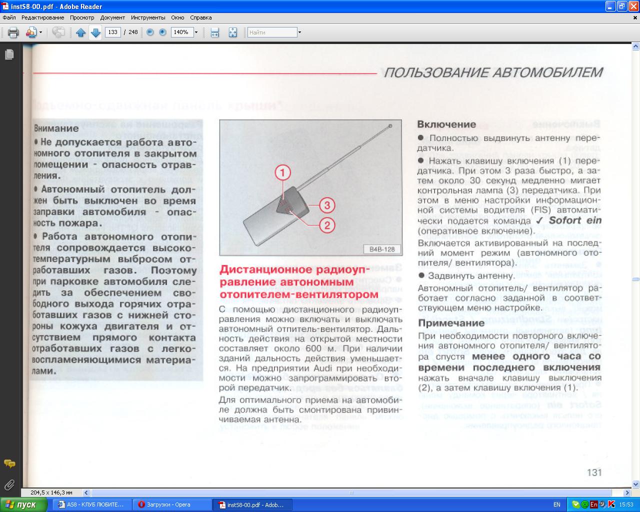 Пульт стандартный, с логотипом ауди и вебасто, с выдвижной антенной, всего 2 кнопки.