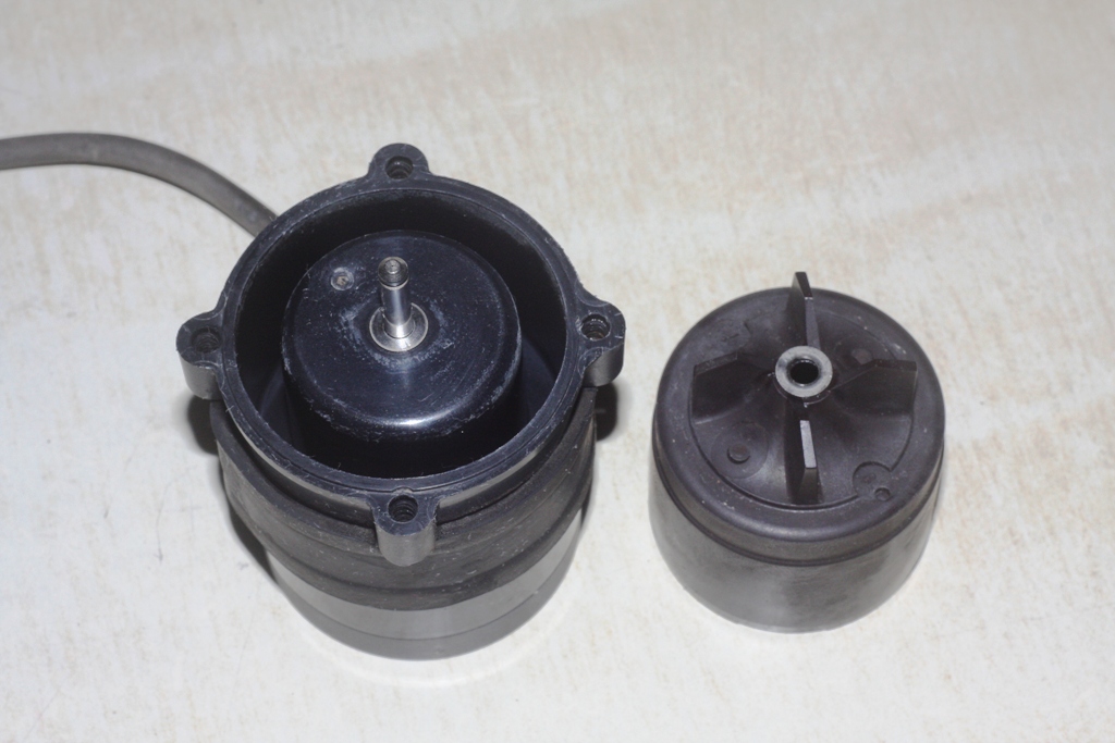 Помпа представляет собой бесщеточный двигатель постоянного тока (внутри под крышкой смонтирована электронная схема, включающая–выключающая обмотки статора. К сожалению, вскрыть ее не удалось, она запаяна