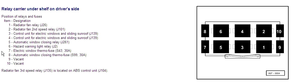 Но, у меня ведь потолок снят, но отключено только управление электролюком и светом салона, а вентилятор от люка солярия, кстати, работает изумительно, т.е. при выключенном зажигании при появлении солнышка от начинает дуть примерно на 2 скорости. Ладно, попробую, подключить всю снятую электрику , может заработает? Кстати по схеме плюс от вентилятора еще завязан на какое то реле (HOT AT ALL TIMES, кстати, что это такое в техническом переводе?) а через него на три реле COOLANT FAN (написано что они находятся на панели реле), попробую их еще поменять на заведомо рабочие, пока аналогичная машина под рукой.