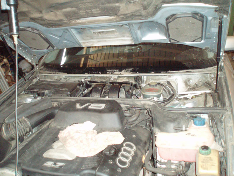 Снял дворники, что бы было удобнее, планку пластмассавую под ними ..