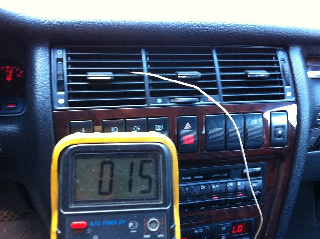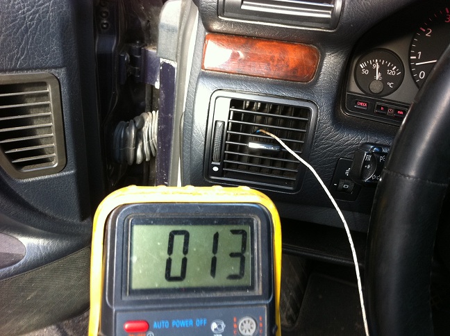 Ты сравни еще с показаниями заднего воздуховода. У меня не то что термометром, рукой явно ощущается большая разница. Впереди холодный, назад идет гораздо теплее.