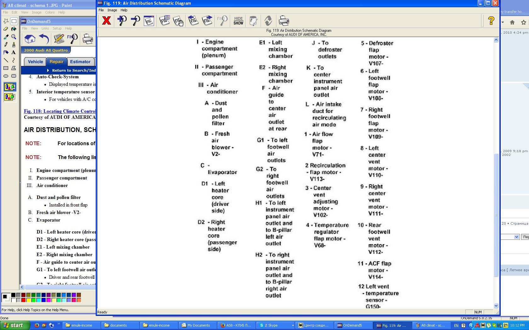 я думаю - тебе не электрическая схема нужна - а воздуховодов... оба этих привода(на центральный воздуховод - холодного - после эвапоратора и теплого - после печек) - должны быть с левой стороны и вполне доступны (условно доступны