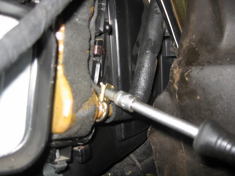 Открываем бардачок и откручиваем его. Крепится он тремя саморезами(голова восьмерка), два сверху и один снизу справа. Открутив их и опустив бардачок вниз, откручиваем замок бардачка (шестигранник на 6 ) и отсоединяем Эл. разъем. Бардачок убираем в сторону.