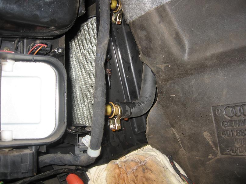 Сегодня полез- пока снял только правый. Один важный момент не указан(может изза того что у меня рест).это отсоединение трубок-если нижняя трубка с изгибом и ее можно выдернуть слегка согнув-то верхний патрубок прямой. Дергал-дергал-не идет. Потом вспомнил,что при замене испарителя на другой машине воевал с зажимами этих патрубков снаружи. Заглянул-точно- держит конкретно. Длинной отверткой слегка отогнул и оттуда же и сдвинул на пару см. Вылетел радиатор сразу