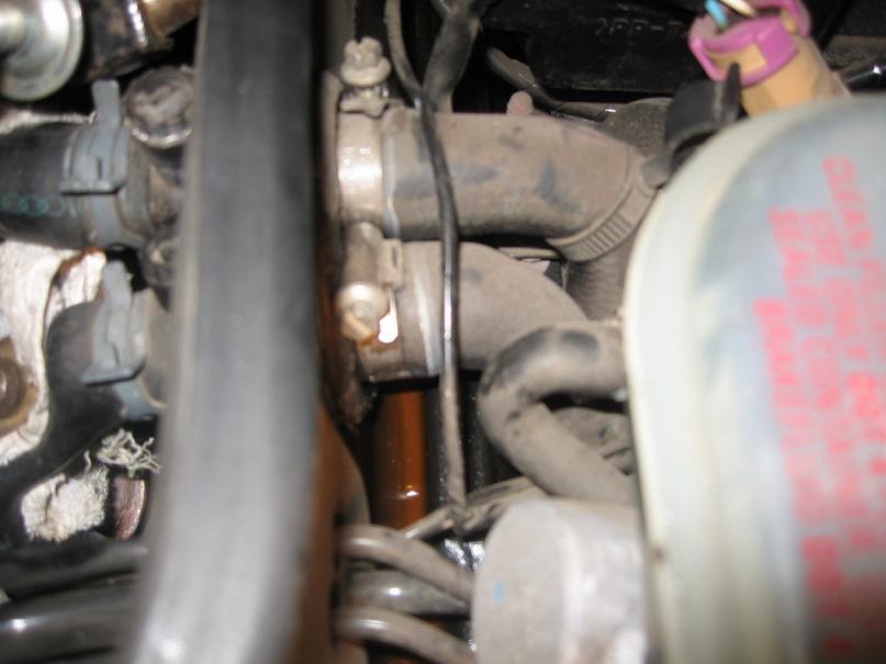Блин,сумрачный германскийгений. Закончил тем,что упирал отверткув хомут натрубкесосторонымоторного отсека и поджимал ееструбциной. Вроде все зажимы стали на место. Зато теперь африка. Не знаю что делать с водите