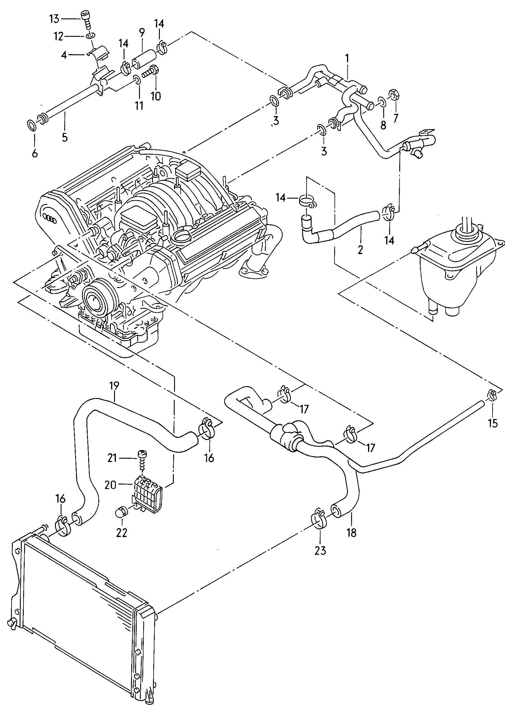 3. Патрубки соединены с низом расширительного бачка (на фото не видно - загораживает шланг слева)
